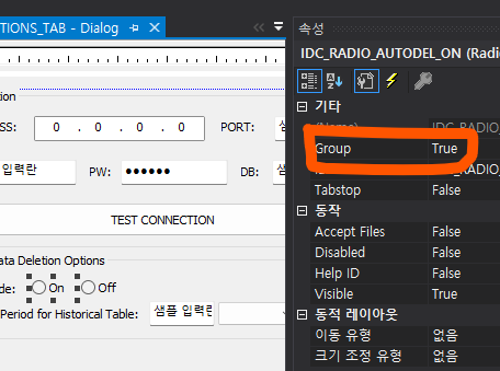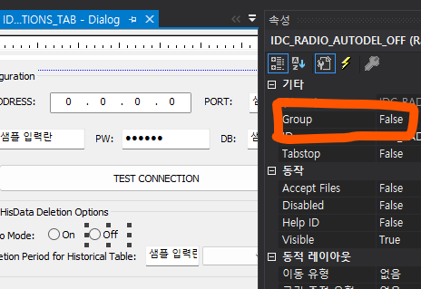 그래서 첫 번째 라디오 버튼 속성 Group을 봤더니