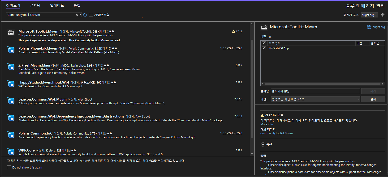 CommunityToolkit.Mvvm 선택하시고 설치를 눌러주세요.
