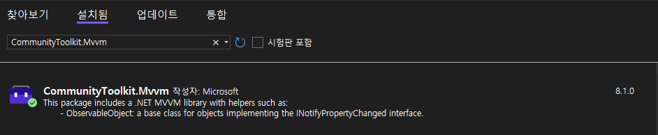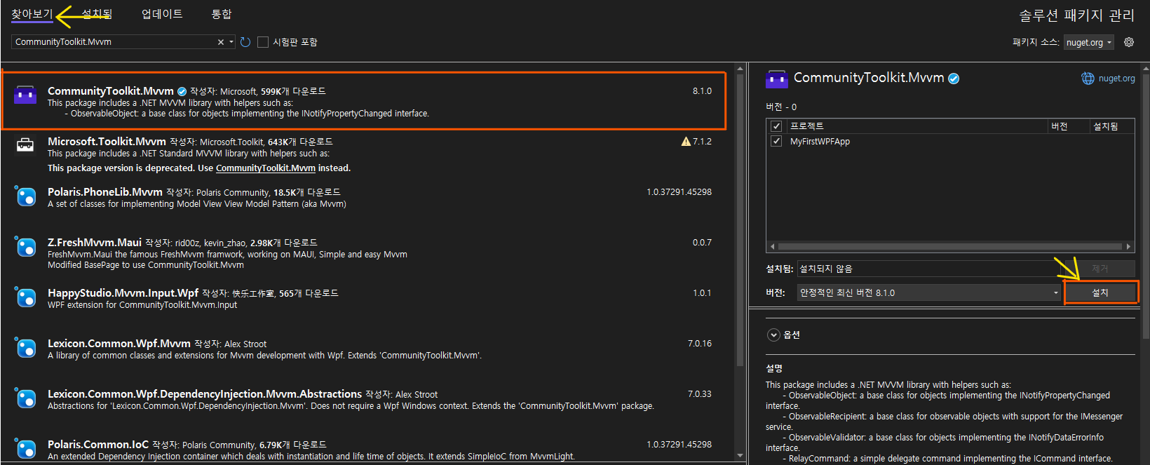 CommunityToolkit.Mvvm 선택하시고 설치를 눌러주세요.