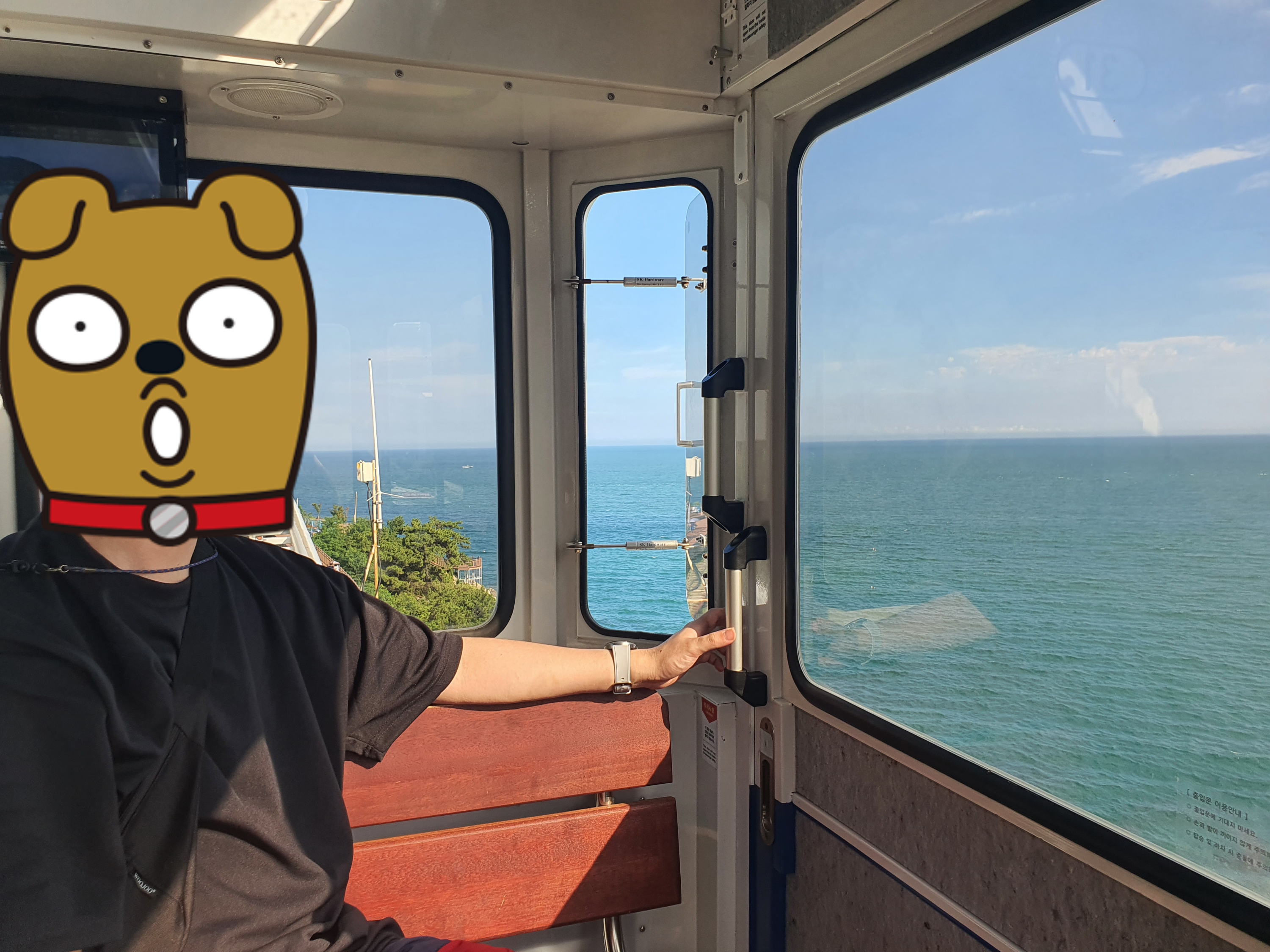 저희는 미포 출발 -> 청사포 도착 스카이 캡슐을 이용하고