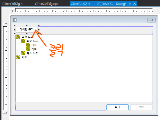 void CCTreeCtrlDlg::OnBtnClick_AddItem() // 버튼 클릭시 발생되는 이벤트 함수 정의
