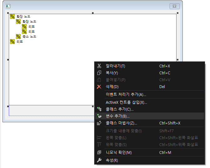 1. 트리 컨트롤을 오른쪽 클릭 후 "변수 추가" 항목을 선택합니다.
